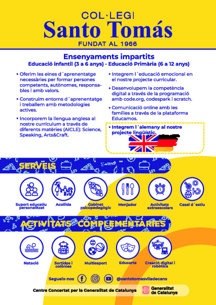 Si ens voleu conèixer podeu demanar cita prèvia per fer una entrevista individual trucant al 93 658 07 87 o enviant un correu electrònic a info@colegiosantotomas.cat